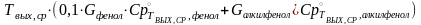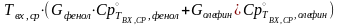 Необходимо найти температуру выходящей смеси из реактора, для этого нужно знать температуру входящей смеси. После смешения фенола и олефина их средняя температура будет равна Tвх,ср . Таким образом Qвх равно: