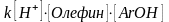 1. Происходит протонирование олефина с образованием карбкатиона: