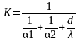 Где К-коэффициент теплопередачи, определяющийся по следующей формуле