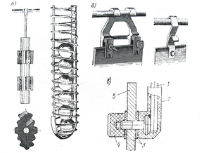 На рис. 1 представлены типы сборных анодов(а) и подвесок(б) для крепления анодов к штангам.