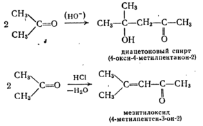 На первой стадии Кротоновая конденсация происходит так называемая альдольная конденсация, приводящая (в случае альдегида) к альдолю (I); на второй - дегидратация продукта альдольной конденсации. Кротоновая конденсация происходит под действием сильных кислот (например, концентрированной серной кислоты) или оснований (KOH, NaOH, KCN или др.), чаще при нагревании. Альдегиды и кетоны реагируют только по a-метиленовой группе и могут вступать в Кротоновая конденсация с др. соединениями, содержащими активную СН2-группу, например с нитросоединениями: