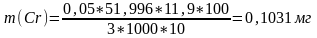 Исходя из полученной концентрации отобрали аликвоту 10 мл полученного раствора (в 10 мл содержится 5,252 мг хрома, что попадает в интервал 5-10 мг).