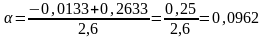 α = 0,0962 (отрицательный корень, как не имеющий физического смысла выбрасываем).