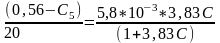 (0,56 - С5) (1 + 3,83С) = 5,8 * 10-3 * 3,83С * 20