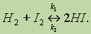 Например, если смешать пары иода с водородом при температуре 200°С, то произойдет реакция: