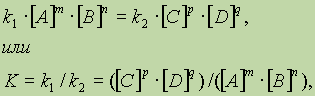 где К — константа равновесия, представляющая собой отношение констант скорости прямой и обратной реакций.