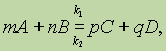 В общем случае, если в реакцию вступают одновременно т молекул вещества А и n молекул вещества В, т. е.