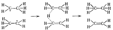 По схеме, обратной (6.11), идут реакции диспропорционирования свободных радикалов, например: