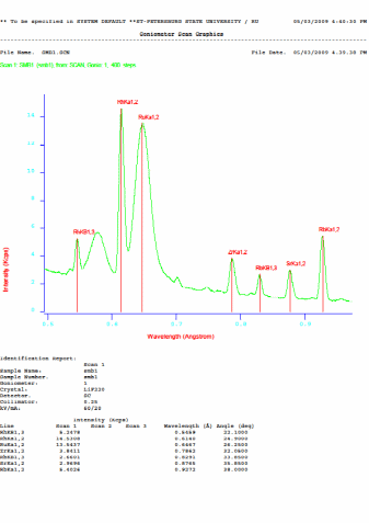 Образец полученного спектра на рентгенофлуоресцентном (XRF) спектрометре последовательного анализа ARL ADVANT'X