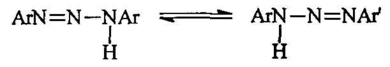 Равновесие смещено в сторону образования триазена, в молекуле которого протон находится у более основного атома азота, т. е. связанного с более электронодонорным радикалом: