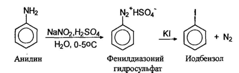 Соли арилдиазониев реагируют с иодидами натрия или калия образуя арилиодиды: