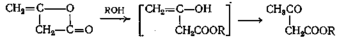 Присоединение спирта к кетену, вероятно, идет как присоединение к карбонильным группам. Сначалаобразуется енол