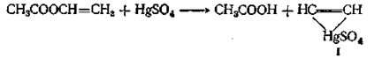 «Винильный обмен» требует применения в качестве катализатора ртутной соли сильной кислоты. Температура при этой реакции должна поддерживаться в области 20—80 °С; более высокие температуры приводят к образованию диэфиров этилидена и ангидридов кислот. Этот метод синтеза позволяет получать более чистые мономеры, чем те, которые образуются в результате присоединения ацетилена к кислоте. Считают, что в этом случае соль ртути образует ацетиленовый комплекс (I)