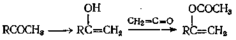 Эта реакция может протекать с образованием кетена, из которого получают изопропенилацетат, но возможно также, что при реакии, катализируемой кислотой, образуется ион ацилия, атакующий спирт. Приведен пример образования сложного эфира, а также эфира енола.
