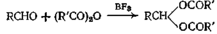 Эти реакции присоединения применяют в ограниченных масштабах для синтеза а-галогензамещенных сложных эфиров или ацилалей. Сложные эфиры получают, смешивая компоненты либо сами по себе, либо в присутствии следов хлористого цинка, причем выходы составляют примерно 50%. Ацилали лучше всего получать действием уксусного ангидрида, если реакцию вести с добавлением небольших количеств эфирата трехфтористого бора, но с ангидридами пропионовой и и-масляной кислот наилучшие результаты достигаются при добавлении 10%-ного избытка катализатора сверх эквивалентного количества. При проведении реакции как с малым количеством катализатора, так и с избытком уксусный ангидрид и формальдегид образуют смеси, а с янтарным и пропионовым альдегидами реакция не идет. Выходы при этих реакциях присоединения составляют 60—80%. При реакциях присоединения ангидрида можно использовать кислоты, например серную кислоту, но выходы при этом обычно получаются более низкими, кроме тех случаев, когда добавляют ацетат натрия.