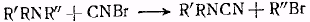 Для отщепления одной алкильной группы от третичных аминов обычно пользуются реакцией с бромистым цианом. Реакция эта протекает по уравнению