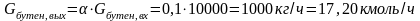 Выход продуктов на пропущенное сырье в расчете на пропилен рассчитывается по формуле: