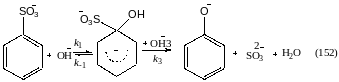 В соответствии с общими положениями ароматического нуклеофилыюго замещения и данными, полученными при изучении кинетики этой реакции, в настоящее время механизм щелочного плавления может быть представлен уравнением (3). Считают, что при действии второго гидроксид-иона происходит отрыв протона от гидроксильной группы -комплекса. Электронодонорное влияние образующегося заместителя О способствует последующему отщеплению иона SO32