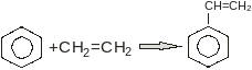 Рассмотрим процесс синтеза этилбензола из бензола. Продуктами этого синтеза будут бензол и этилен, получение которых мы рассмотрели выше. Реакция проходит за уравнением: