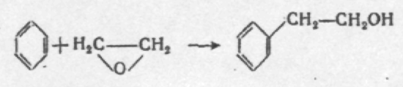 Окись этилена способна присоединять углеводороды. Так в присутствии безводного хлорида алюминия окись этилена с бензолом образует