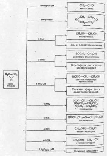 Рис. 3.1. Синтезы на основе окиси этилена.