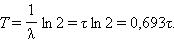 Величина T называется периодом полураспада. За время T распадается половина первоначального количества радиоактивных ядер. Величины T и τ связаны соотношением