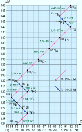 состоящая из 14 последовательных распадов (8 – альфа-распадов и 6 бета-распадов). Эта серия заканчивается стабильным изотопом свинца
