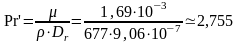 Знаходимо значення дифузійного критерію Прандтля: