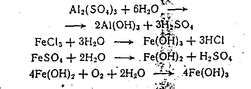 При введении в воду солей алюминия и железа в результате реакций гидролиза образуются малорастворимые в воде гидроксиды железа и алюминия: