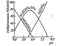 Образующиеся в процессе гидролиза серная или соляная кислоты должны быть нейтрализованы, иначе равновесие реакции будет сдвинуто влево данные исследований указывают, что при обработке воды сульфатом алюминия помимо гидроксида алюминия образуются соединения.