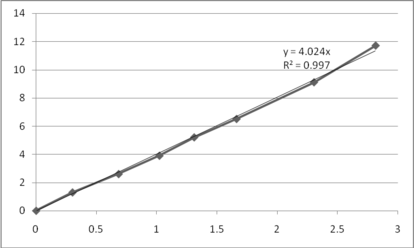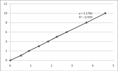 – линейная, и тангенс угла наклона линии данной зависимости к оси абсцисс будет равен порядку реакции по реагенту А1. Для построения данной зависимости найдем значения