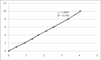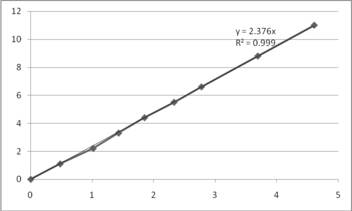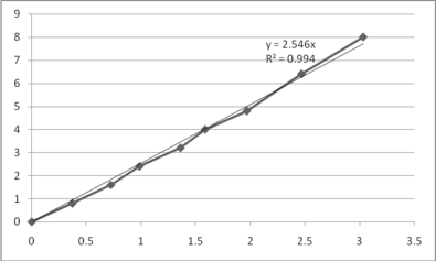 Все точки, включая начало координат аппроксимируются прямой с высокой точностью, следовательно, порядок по реагенту А2 равен 1.