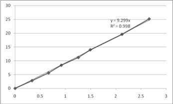 Из вида кинетического уравнения следует, что его единственным параметром является константа скорости реакции k. Для определения значения константы скорости воспользуемся статистическим методом регрессионного анализа экспериментальных данных. Для оценки адекватности полученной модели будем использовать опыты с одинаковыми начальными данными. Исходя из плана эксперимента, такими опытами являются опыты №№1-3.