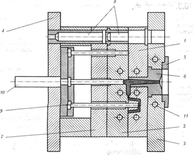 Рис. 7. Схема устройства холодноканальной литьевой формы