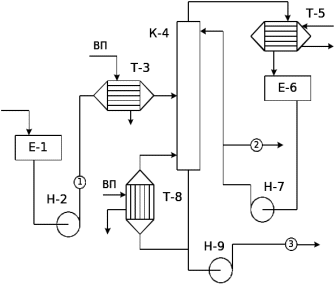Аппарат Н–2 — насос — предназначен для подачи сырья ректификационной установки в качестве питания на ректификационную колонну К–4 через теплообменник Т–3.
