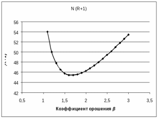 Рисунок 3 — График зависимости N∙(R + 1) от коэффициента орошения β