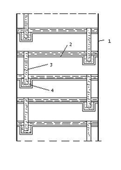 Рис. 1.11. Схема устройства тарельчатой (колпачковой) колонны: 1 – тарелка; 2 – колпачок; 3 – паровой патрубок; 4 – переливная трубка.