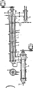 Насадочные, барботажные, а также некоторые пленочные колонны по конструкции внутренних устройств (тарелок, насадочных тел и т. д.) аналогичны абсорбционным колоннам. Однако в отличие от абсорберов ректификационные колонны снабжены теплообменными устройствами – кипятильником (кубом) и дефлегматором. Кроме того, для уменьшения потерь тепла в окружающую среду ректификационные аппараты покрывают тепловой изоляцией.