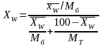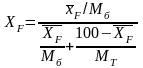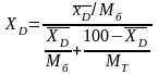 Концентрации питания, дистиллята и кубового остатка в мольных долях рассчитываются по формулам: