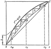 Рис. 2.17. Графическое определение числа теоретических тарелок: