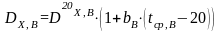 Температурный коэффициент b для верхней и нижней частей колонны: