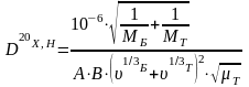 Коэффициент диффузии в жидкости при температуре t=200C в верхней и нижней частях колонны: