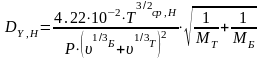 Коэффициент диффузии в паровой фазе при средней температуре в верхней и нижней частях колонны: