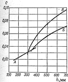 Рис. 2.19. Значения коэффициента С: А, Б – колпачковые тарелки с круглыми колпачками;В – ситчатые тарелки.