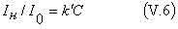 Уравнение (V.6) показывает, что отношение интенсивности рассеянного света к интенсивности падающего пропорционально концентрации взвешенных частиц. Калибровочный график в координатах Iн/I0 как функция С будет линеен. Тем не менее иногда можно встретить рекомендацию строить калибровочный график в координатах Dкаж - С, где Dкаж - так называемая относительная или кажущаяся оптическая плотность, рассчитываемая как Dкаж=-lg(Iн/I0) Такая рекомендация дается, например, в заводских описаниях некоторых нефелометров (НФМ и др.).