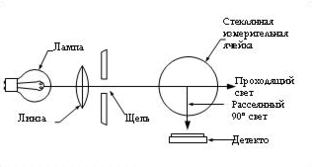 Рис. 2. В нефелометрических измерениях мутность определяется по свету рассеянному под углом 90°