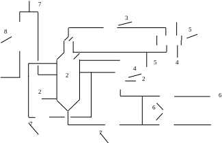 1-сырьё; 2-водяной пар; 3-углеводородный газ; 4-кислая вода; 5-нестабильная бензиновая фракция; 6-газойлевая фракция; 7-котельное топливо.