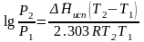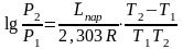 Часто удобнее пользоваться уравнением, полученным при интегрировании в пределах Р2, Т2 и Р1, Т1: