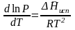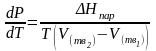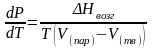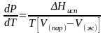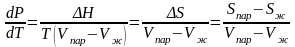 Это важное соотношение известно как уравнение Клапейрона. Оно дает зависимость скорости изменения давления равновесного пара с температурой (dР/dТ) от энтальпии испарения