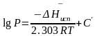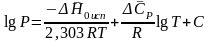 Другое приближение содержит допущение о том, что теплота испарения не зависит от температуры. Однако в широком интервале температур графики зависимости lgP от 1/Т несколько искривлены, потому что